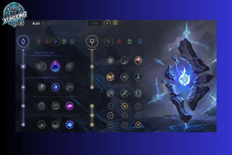 Muốn chơi Azir hiệu quả thì các bạn không thể bỏ qua cách build bảng ngọc Azir. Hai bảng ngọc dưới đây sẽ giúp bạn chơi vị tướng này tốt hơn.